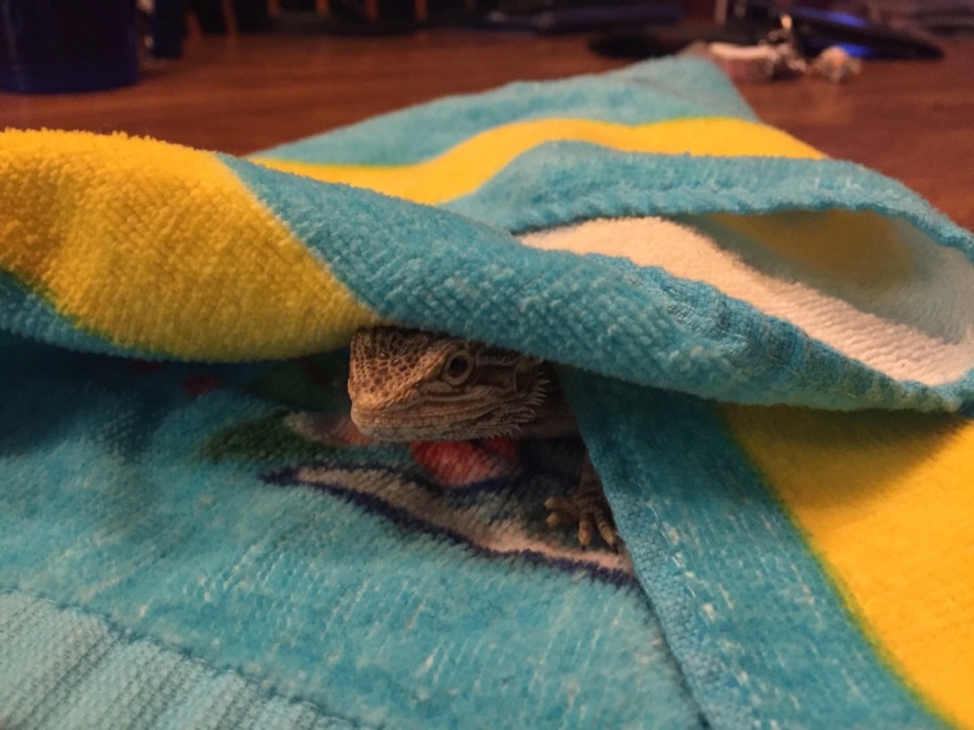 Grumpy lizards get the TOWEL OF CALM YOUR TITS